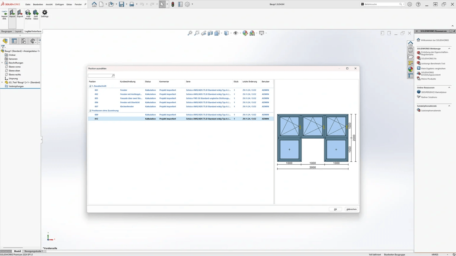 Änderungen, die Sie in SOLIDWORKS vornehmen, wie beispielsweise Bohrungen an Fensterelementen, können problemlos zurück an Logikal übergeben werden. Dies gewährleistet einen durchgängigen Datenfluss und stellt sicher, dass alle Fertigungsdaten korrekt sind.
