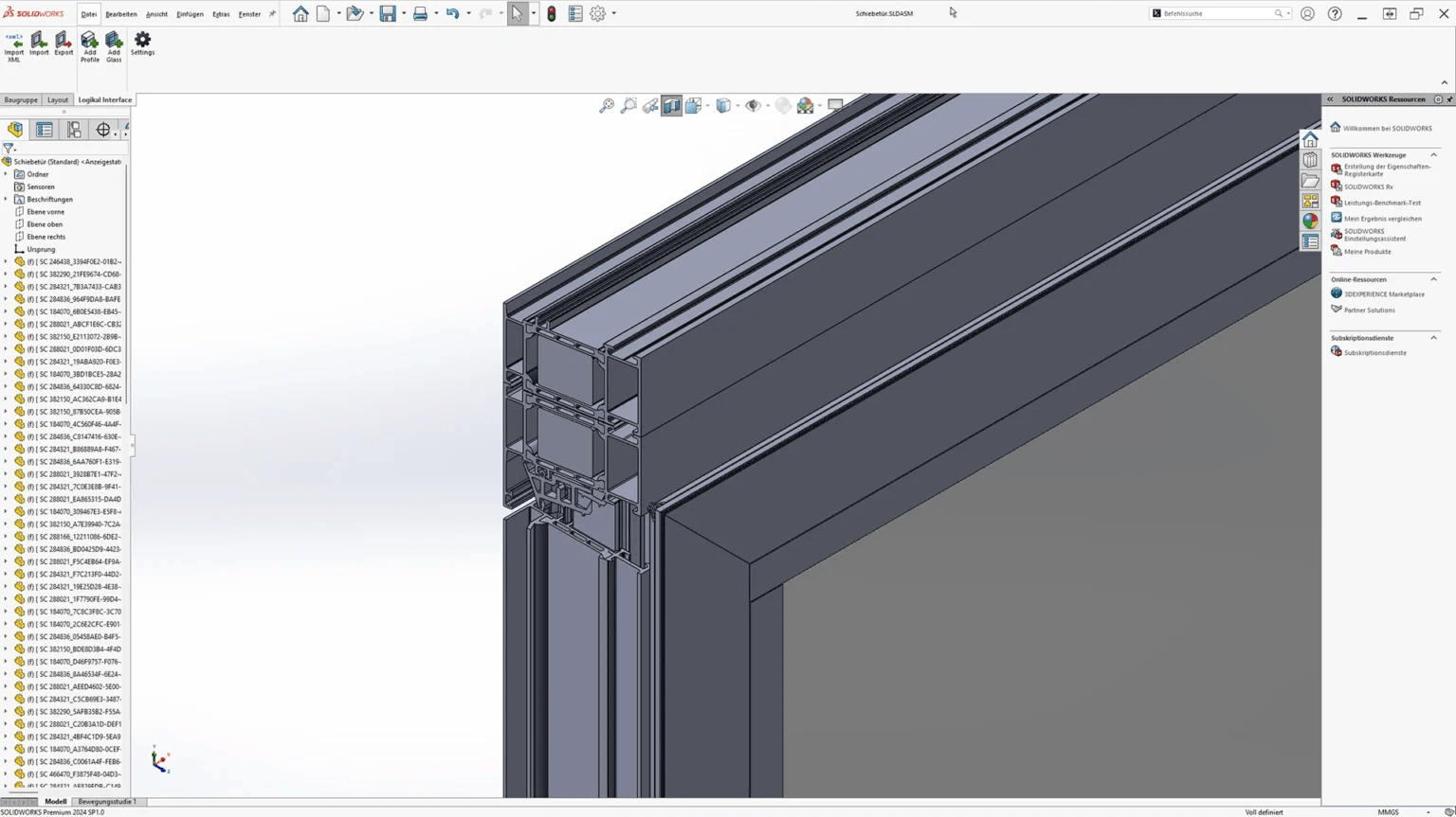 Die Logikal Schnittstelle ermöglicht den bidirektionalen Datenaustausch zwischen der Logikal Software und SOLIDWORKS. Sie bietet Anwendenden die Möglichkeit, Anbauteile für Fenster, Fassaden und Türen direkt auf Grundlage ihrer Logikal Projekte zu konstruieren.