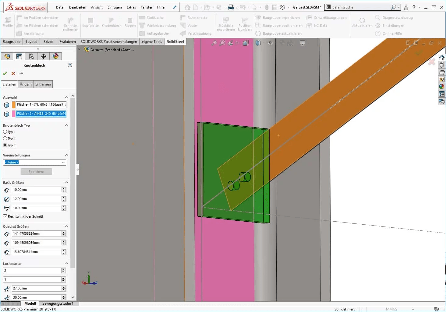 Durch diese Kombination ist SolidSteel parametric sowohl für den klassischen Stahlbau, als auch für den Maschinen- und Anlagenbau eine Bereicherung in der Konstruktion.