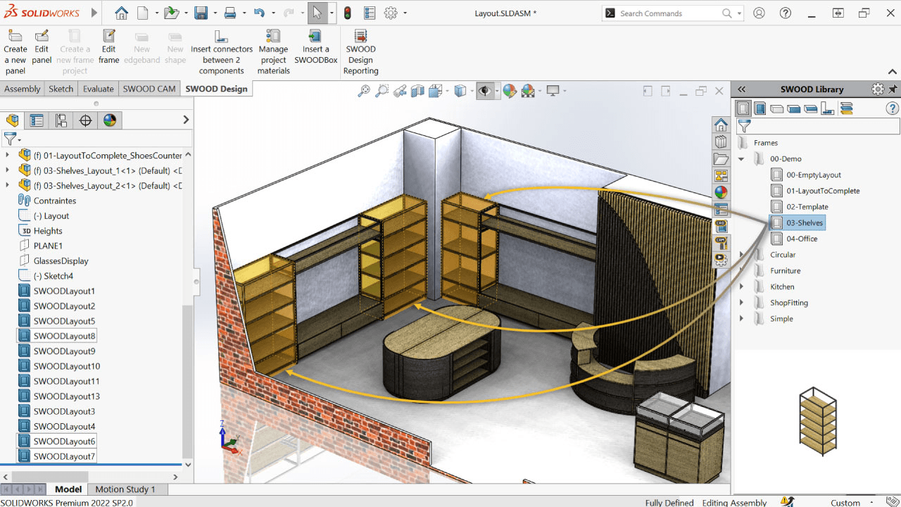 Exportieren Sie mit einem Klick einen vollständigen Bericht uns stellen Sie eine direkte Verbindung zwischen SWOOD, der Werkstatt, dem Informationssystem und anderen Abteilungen her. Produktionsinformationen werden direkt von den Konstruktionsdaten in die Programmierungen und Fertigungsdokumentation integriert.