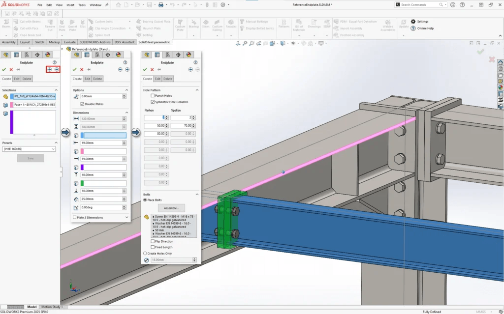 Präzise Platzierung: Abstände können nun anhand von Referenzkanten oder Skizzen exakt bestimmt werden. Das System berechnet automatisch den Abstand und richtet die Kopfplatte bei Bedarf aus.