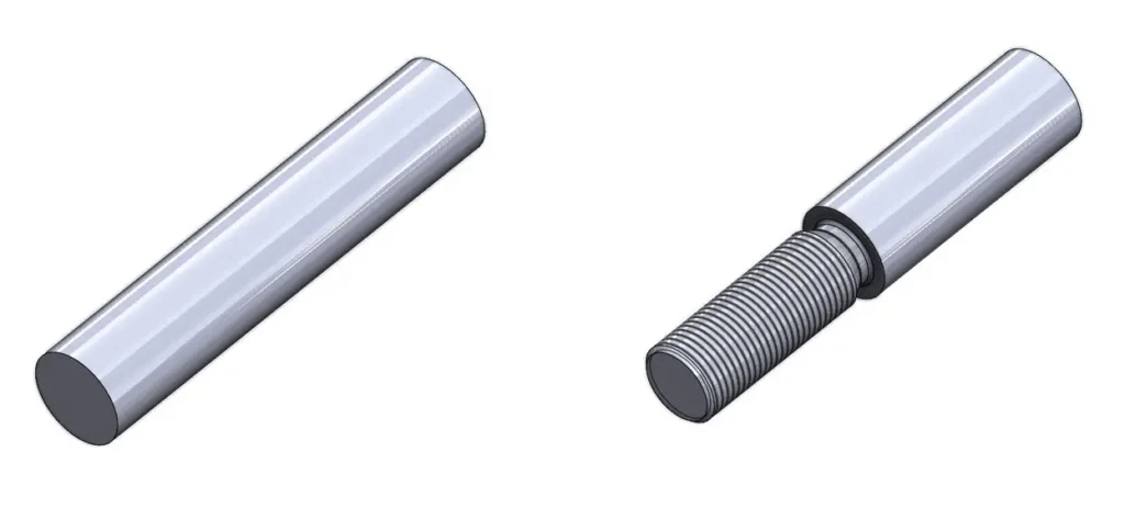 An diesem Beispiel schauen wir uns die Erstellung eines Außengewindes mit dem SOLIDWORKS Gewindebolzenassistenten auf zylindrische Körper an.