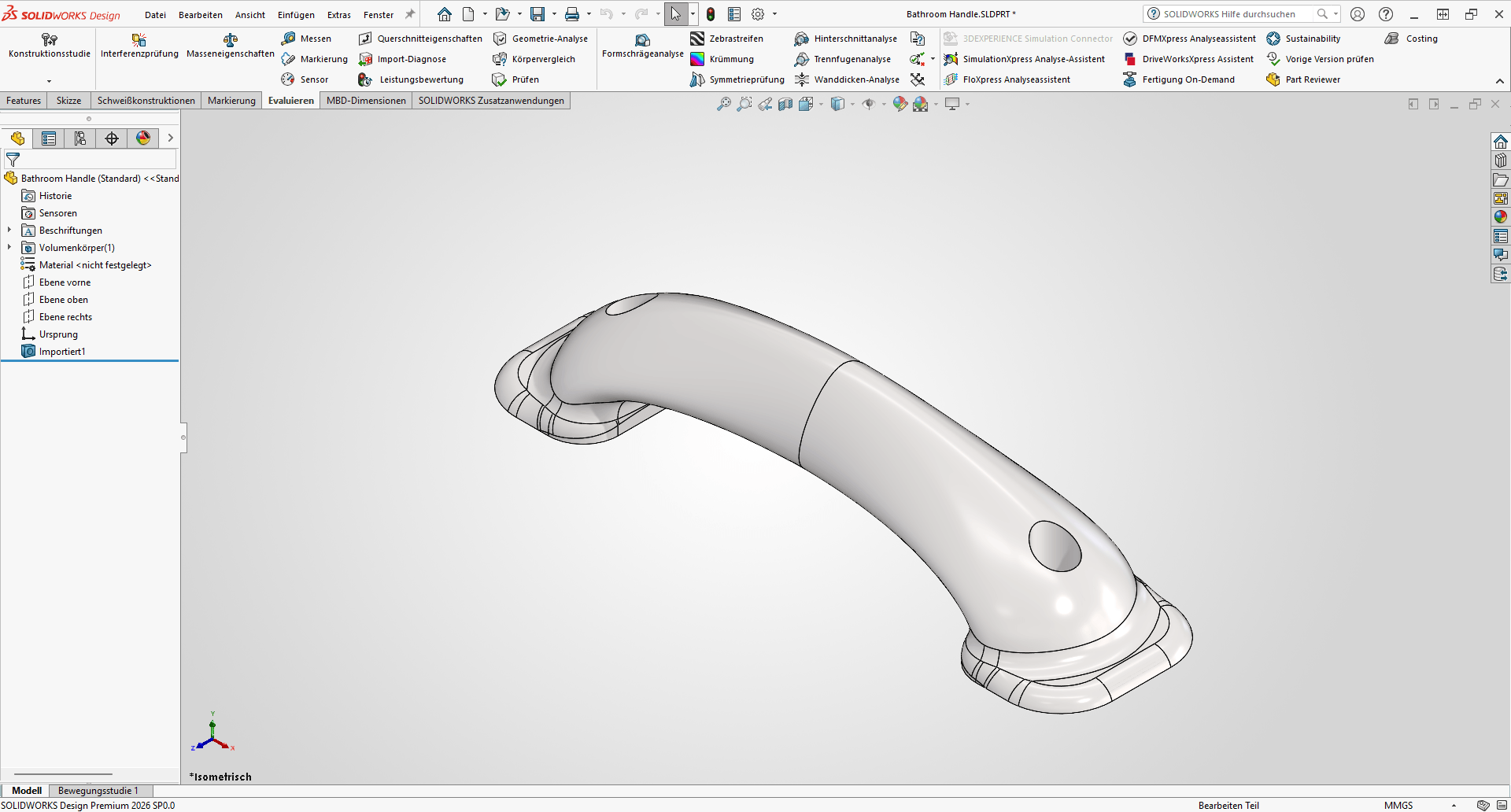 Import der Datei in SOLIDWORKS.