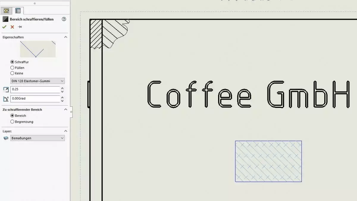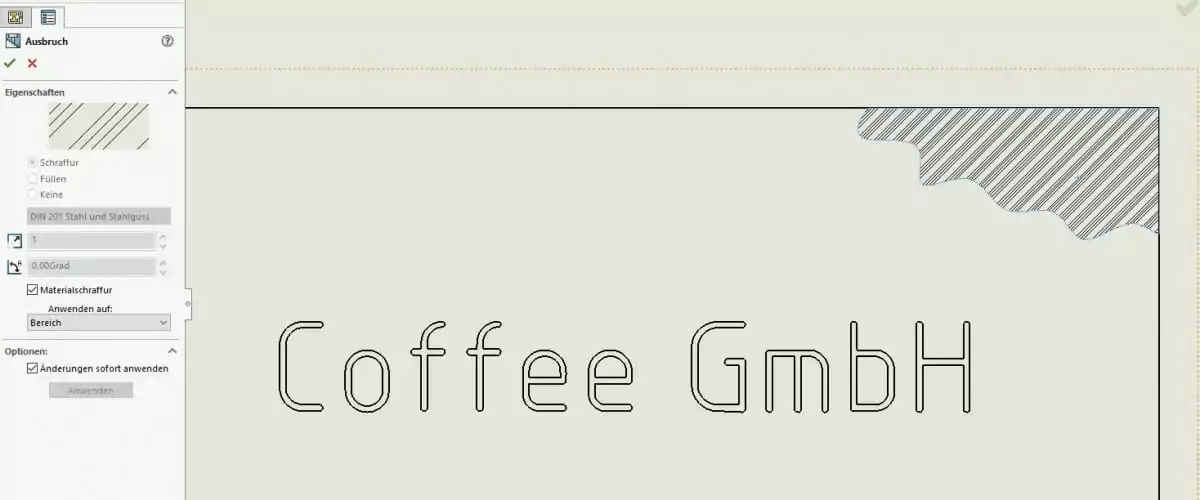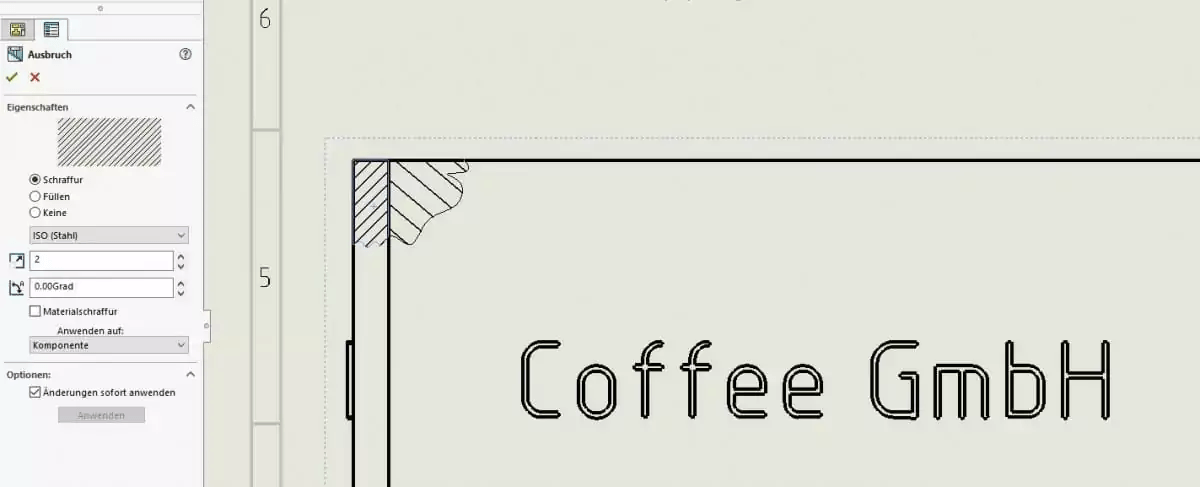 SOLIDWORKS Zeichnung: Schraffuren ändern.