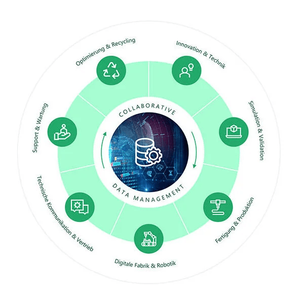 Plattformbasierte PLM-Systeme, wie die 3DEXPERIENCE Plattform von Dassault Systèmes, verbinden Daten mit Menschen und Prozessen über alle Bereiche eines Unternehmens. Da alle Daten zentral vorgehalten werden, können Projektbeteiligte – intern und extern – zu jeder Zeit, von jedem Ort und von jedem Gerät aus darauf zugreifen. Der bidirektionale Datenaustausch stellt zudem die Zusammenarbeit auf stets aktuellen Echtzeitdaten sicher und erleichtert unter anderem das Änderungsmanagement komplexer Produkt- und Prozessstrukturen.