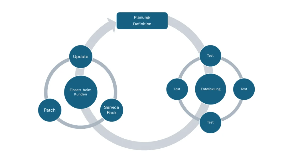 Beim Application Lifecycle Management bilden sich so innerhalb des Lebenszyklus neue, untergeordnete Zyklen, die jeweils eigenständig betrachtet werden können.