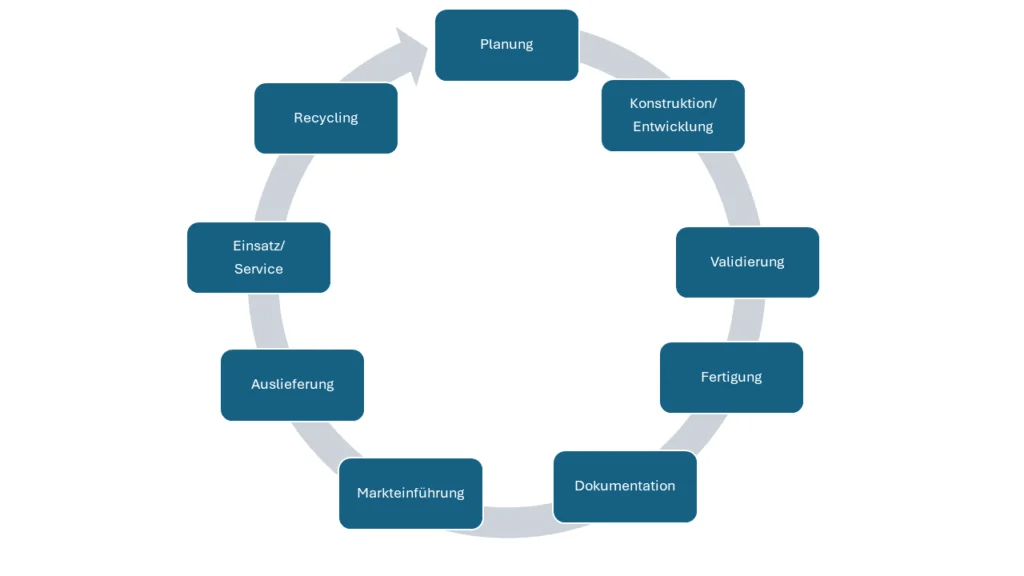 Bezogen auf die einzelnen Prozessschritte im PLM ergibt sich eine einfache Grafik, mit der ein Produktlebenszyklus erklärt werden kann.