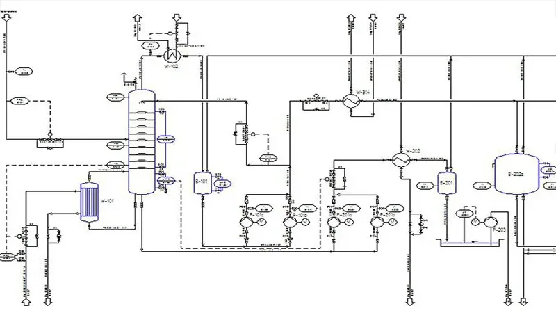 Ein Prozessfließschema bietet eine detailliertere Darstellung und zeigt die Hauptausrüstungsteile, wichtige Steuerungsschleifen und die Hauptströme von Materialien und Energie. Es wird zur Prozessanalyse, -planung und -optimierung verwendet.