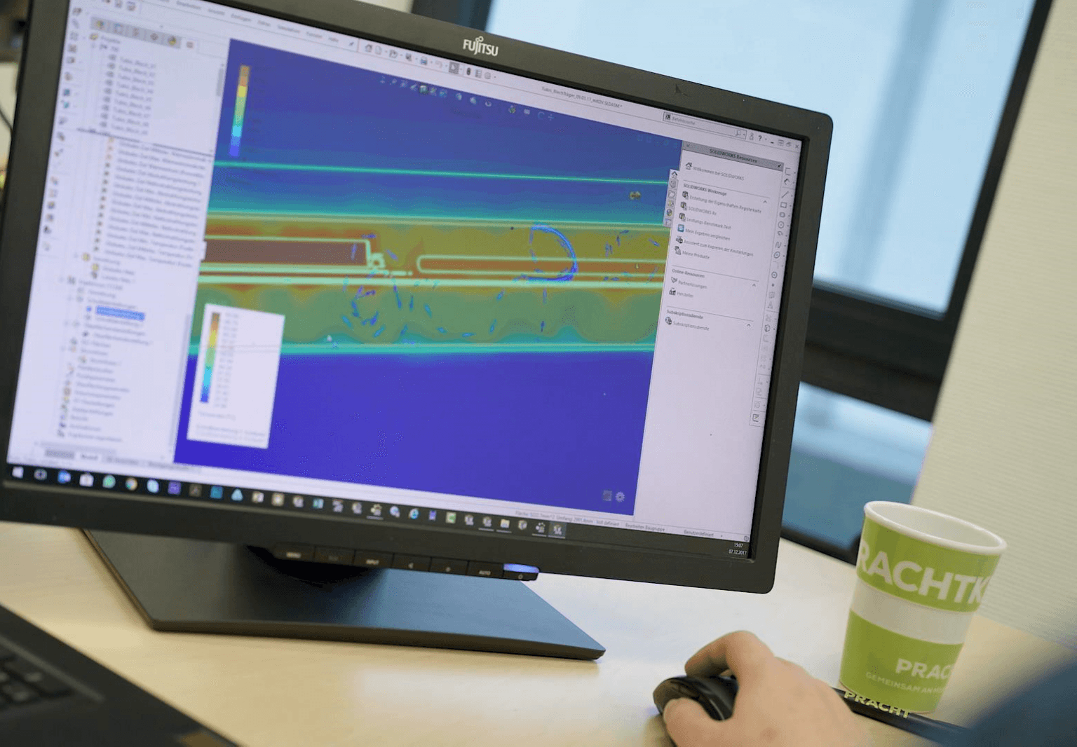 „Wir können mit SOLIDWORKS Flow Simulation viel Zeit und Geld sparen“, führt Keitel aus, „weil wir reale Messungen an mühsam zu produzierenden Prototypen durch die numerische Simulation ersetzen können. Wir haben ein VDE-zertifiziertes Temperaturlabor, das jedoch viel zu tun hat; jede Messung, die wir sparen können, entlastet das Labor. Wir haben Messreihen gemacht und es zeigte sich, dass die Simulation die Realität sehr gut abbildet.“