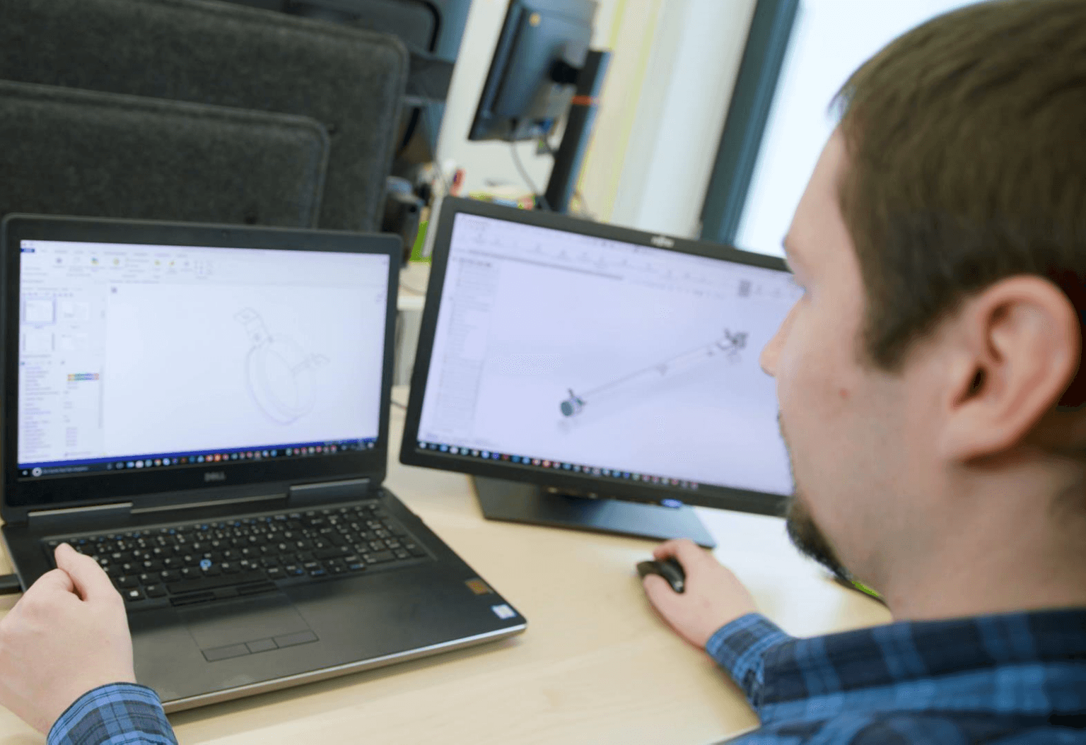 - SOLIDWORKS 3D-CAD für die Konstruktion.