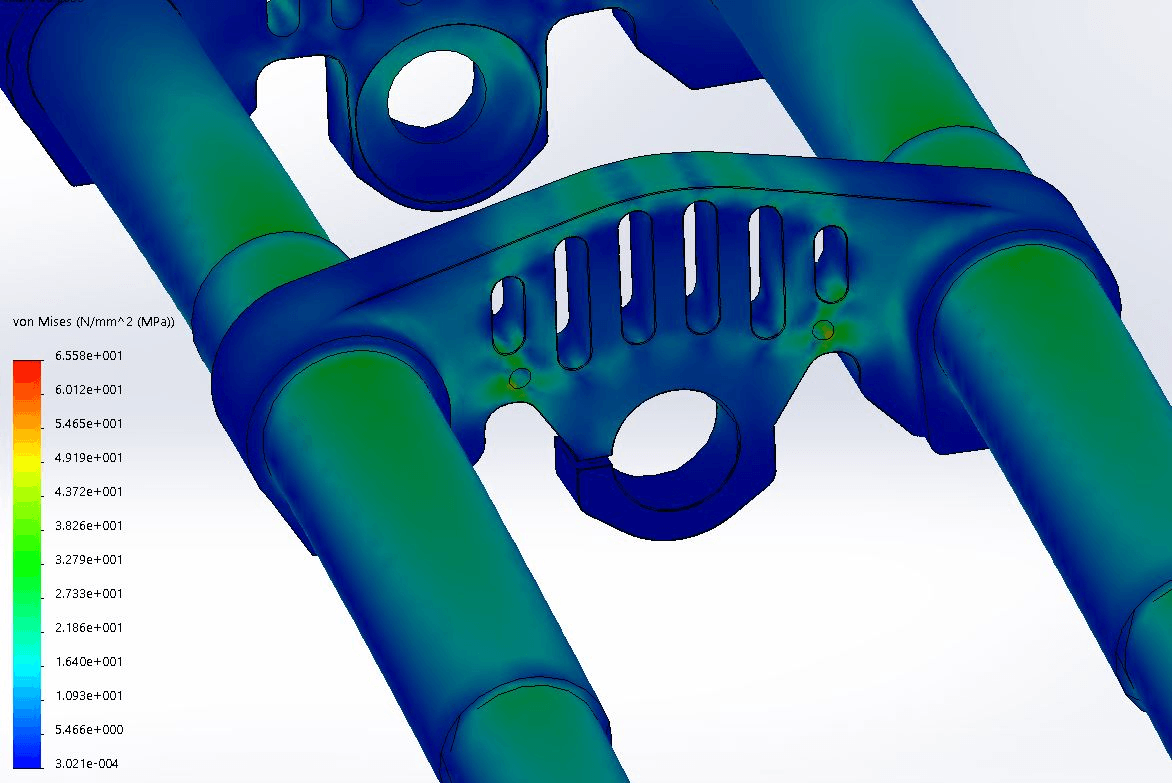 Gechev konstruierte den Rahmen auf Basis von 3D-Skizzen, aus denen ein Volumenmodell des Gitterrohrrahmens berechnet wurde. In den Knoten modellierte er mithilfe der Funktionen für Schweißkonstruktionen alle Schweißnähte dreidimensional. Mit wenigen Angaben war es dann möglich, mit SOLIDWORKS Simulation die Spannungen in den Nähten zu berechnen. „Wir variierten die Rohrdurchmesser und fanden so einen optimalen Kompromiss zwischen Gewicht und Steifigkeit. SOLIDWORKS Simulation lieferte dabei wichtige Erkenntnisse, die die weitere Optimierung vereinfachten.“