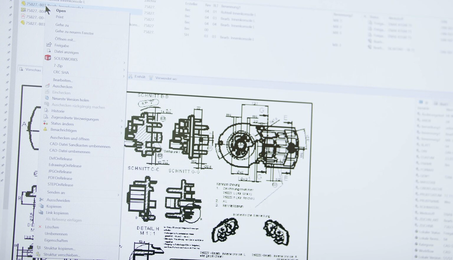 Sämtliche Konstruktions- und Entwicklungsdaten werden im Hintergrund über die SOLIDWORKS PDM Datenverwaltung gesichert. Dies ermöglicht mehreren Konstrukteuren an der gleichen, aktuellen Baugruppe zu arbeiten, ohne dass CAD-Modelle geschädigt oder gar überschrieben werden. Sven Kröner: „Das PDM-System sorgt dafür, dass in den verschiedenen Bereichen immer das aktuelle Teil verbaut ist.“